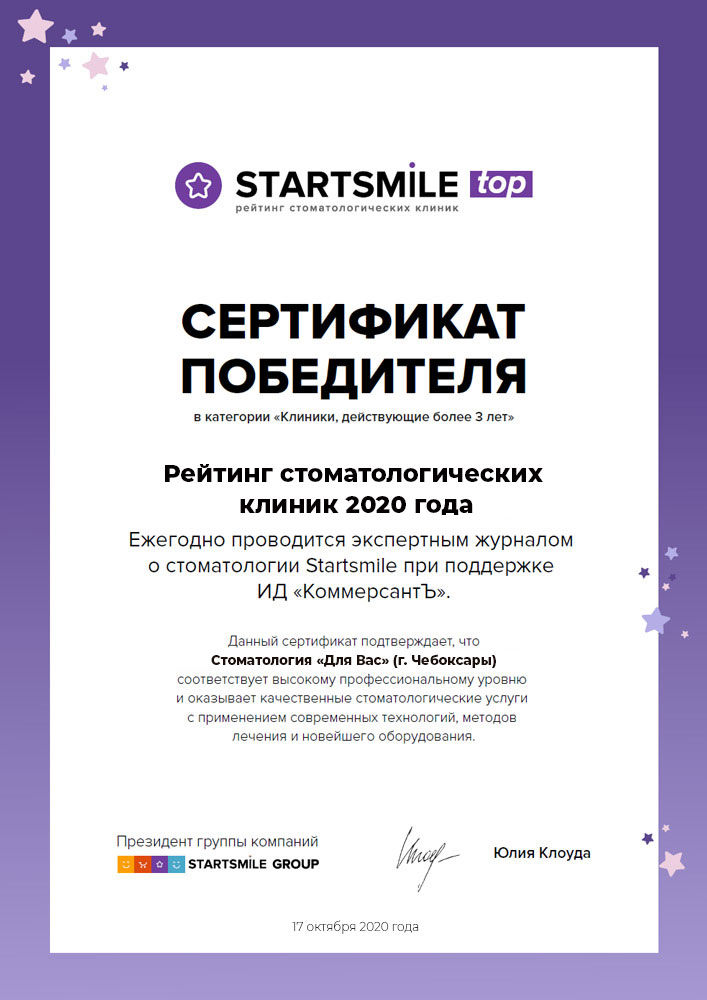 Неоднократно становились победителями Рейтинга частных стоматологий Startsmile top